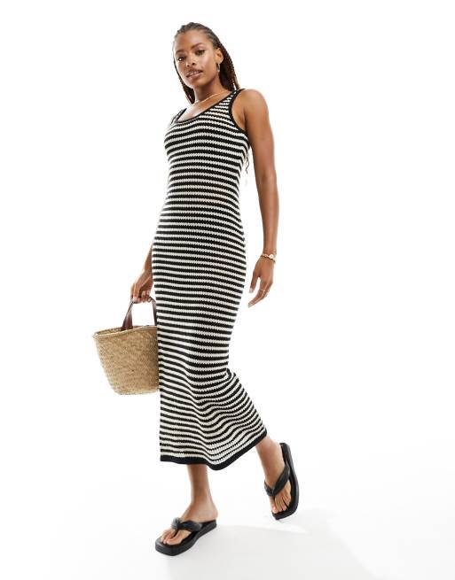 Product Name: Black and white striped high low dress online