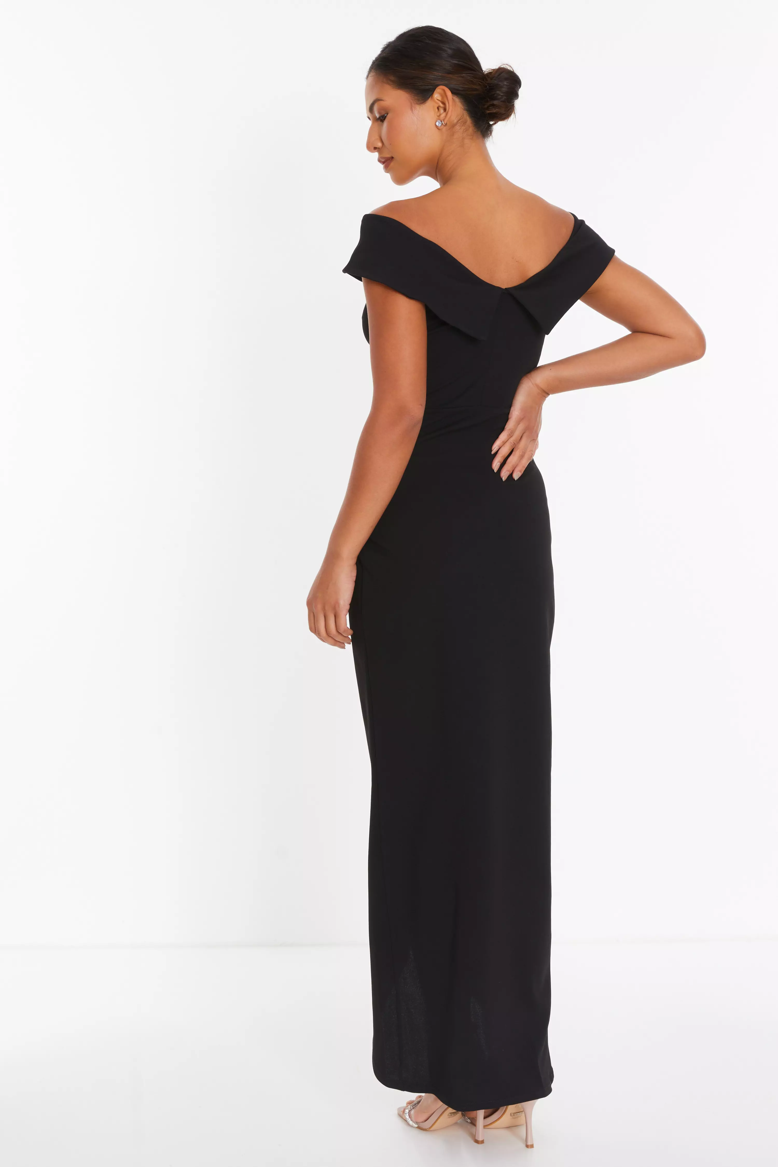 Product Name: Black bardot wrap slit slinky maxi dress online