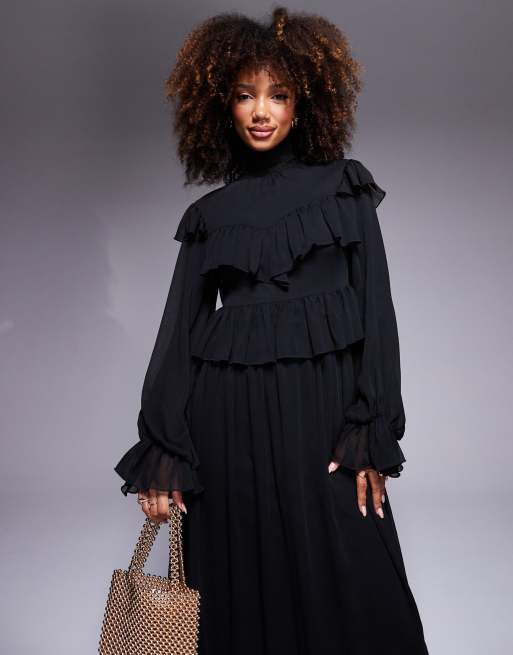 Product Name: Black chiffon ruffle dress online