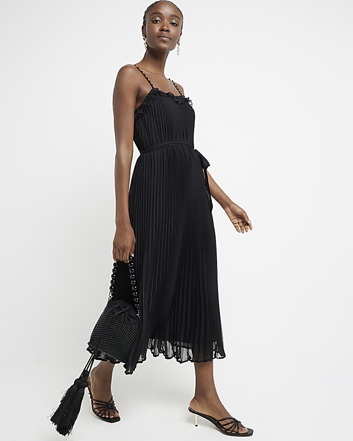 Product Name: Black midi ruffle dress online