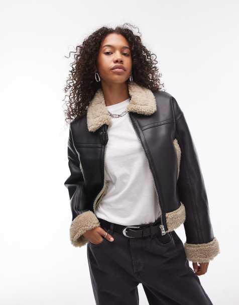 Product Name: Black shearling aviator jacket womens online