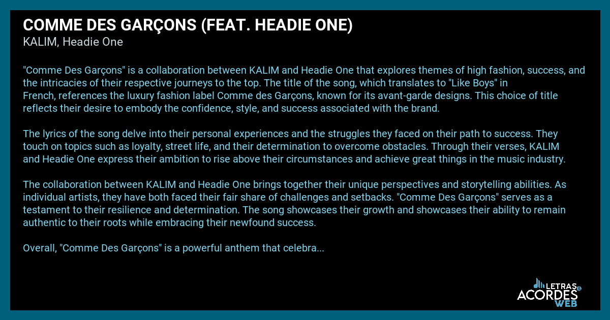 Product Name: Comme des garçons lyrics online