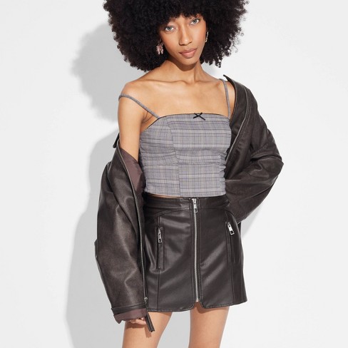 Product Name: Dark brown leather skirt mini online