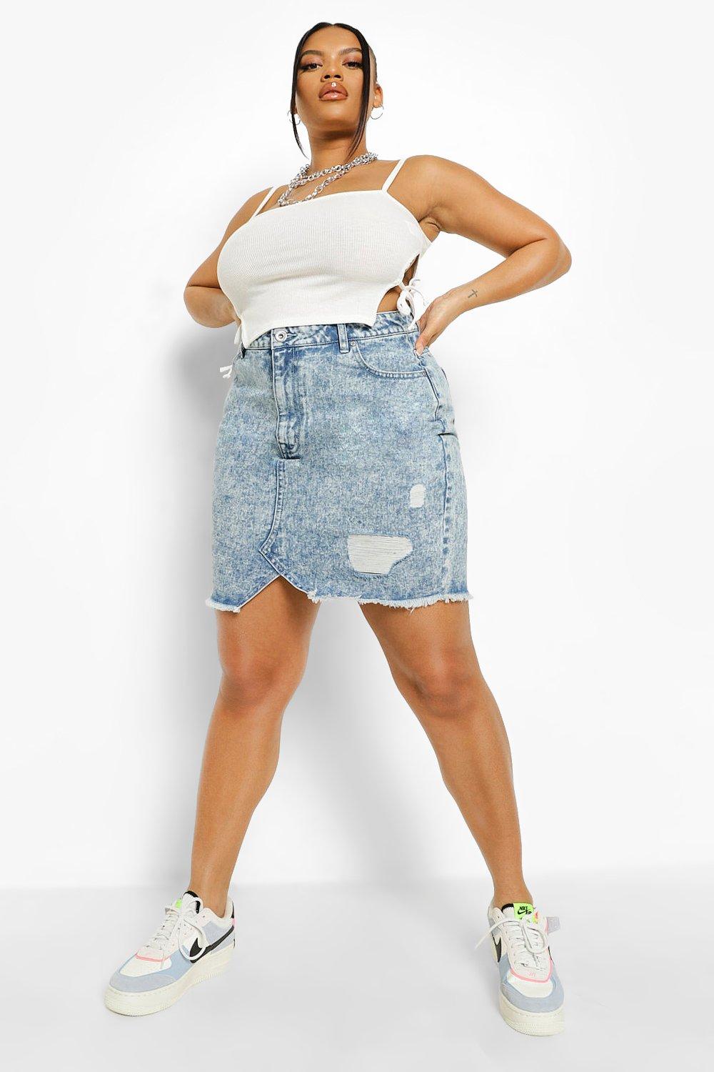 Product Name: Distressed denim skirt plus size online