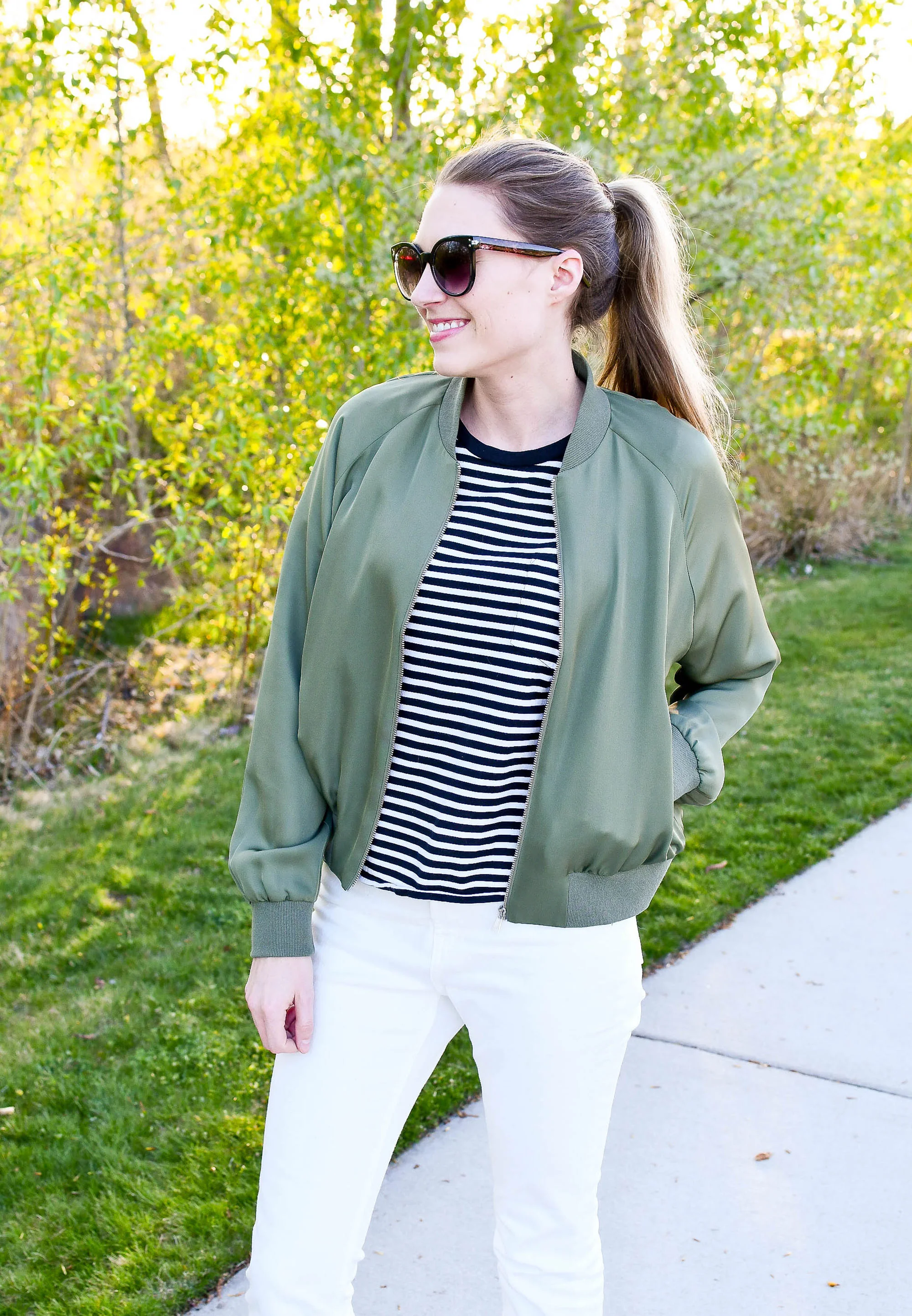 Product Name: Green bomber jacket outfit womens online