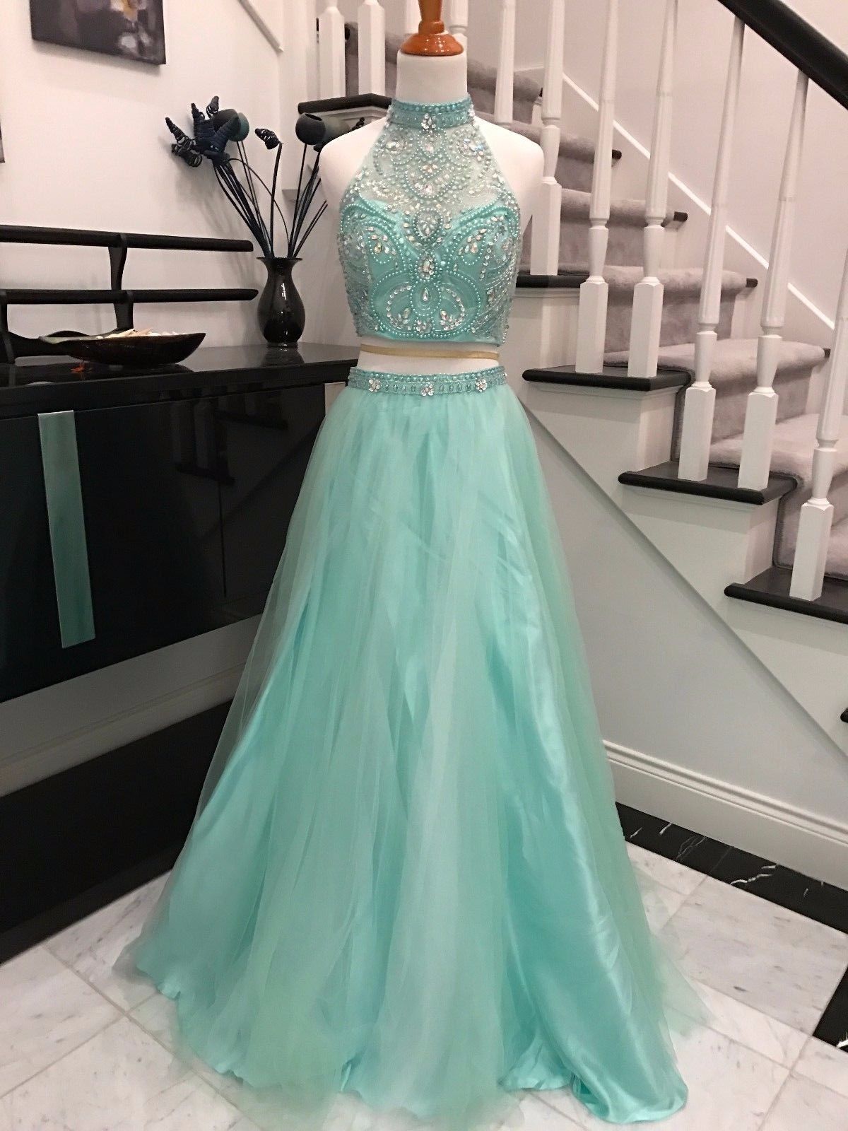Product Name: 2 piece teal prom dress online
