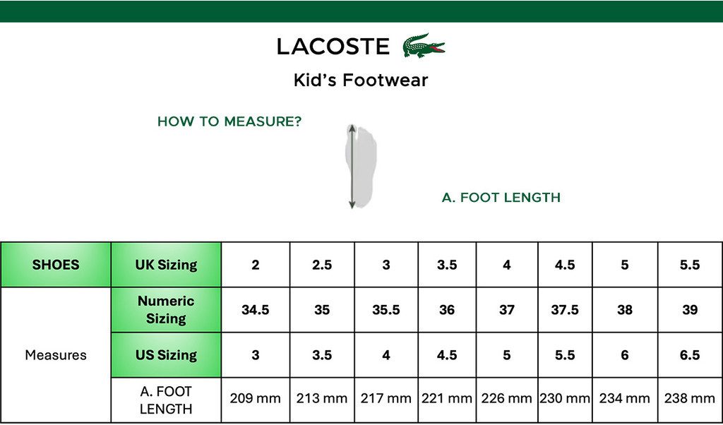 Product Name: Lacoste shoes size chart online