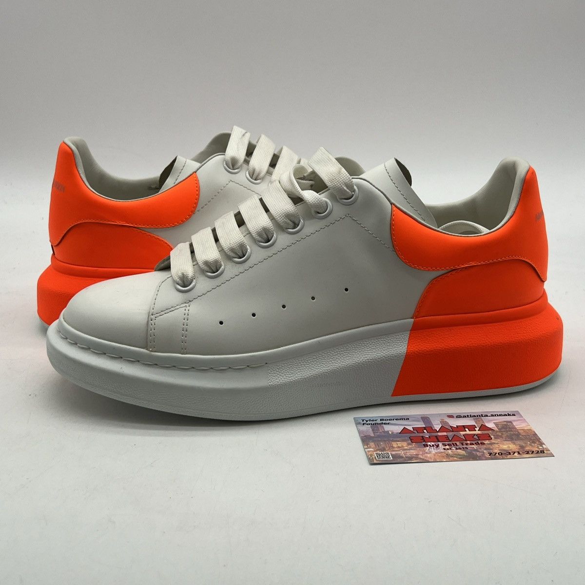 Product Name: Orange and white alexander mcqueen sneakers online