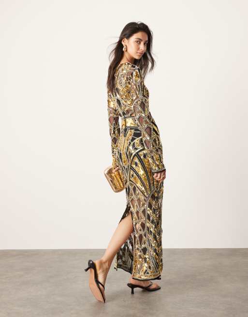Product Name: Plunging neckline maxi dress with sleeves online