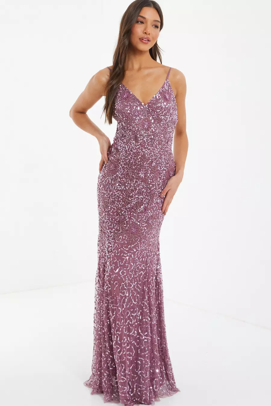 Product Name: Quiz pink embellished maxi dress online