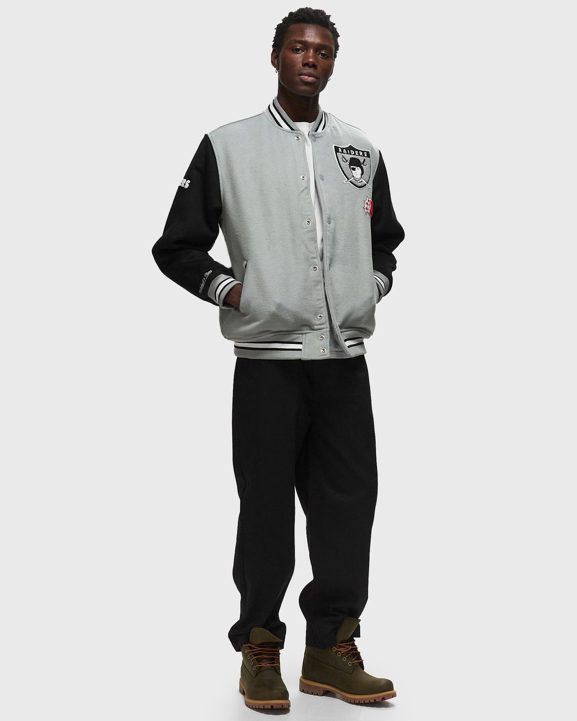 Product Name: Raiders varsity jacket mitchell and ness online