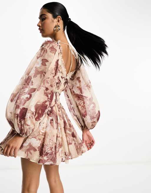 Product Name: Asos design long sleeve mini dress in floral print with cluster embellishment detail and circle trims online