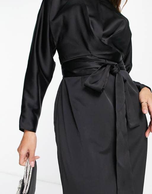 Product Name: Asos design maxi dress with wrap waist with horn detail in satin online