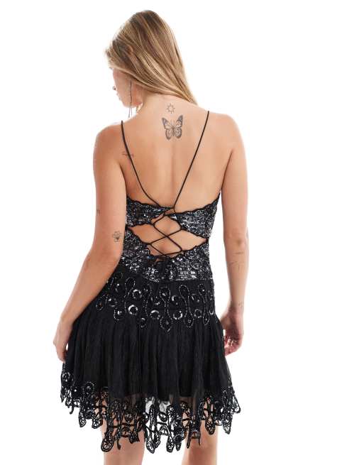 Product Name: Asos design premium lace mini skater dress with long sleeves online